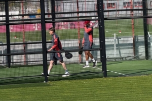 《图片报》晒出照片,透露在今日训练后,拜仁主帅孔帕尼和总监弗罗因德组队参加了板式网球对抗赛,他们的对手是理疗师弗洛里安·布兰德纳和比赛分析师贾科莫·斯泰。