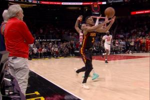 尼克斯暂停,老鹰对布伦森犯规,两罚全中,最后1.2秒,CJ后场跑投三分打板轰进!但裁判回看后发现超时,不过超时只在最后0.1秒之内!毫厘之间!