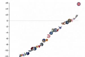 图为面对战绩前10球队净效率值